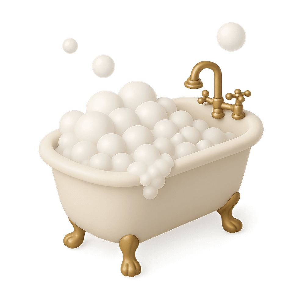 A bubble bath is a relaxing bath experience where soap or special bath products create a layer of bubbles on the water's surface. It is often used for personal care, stress relief, and leisure.