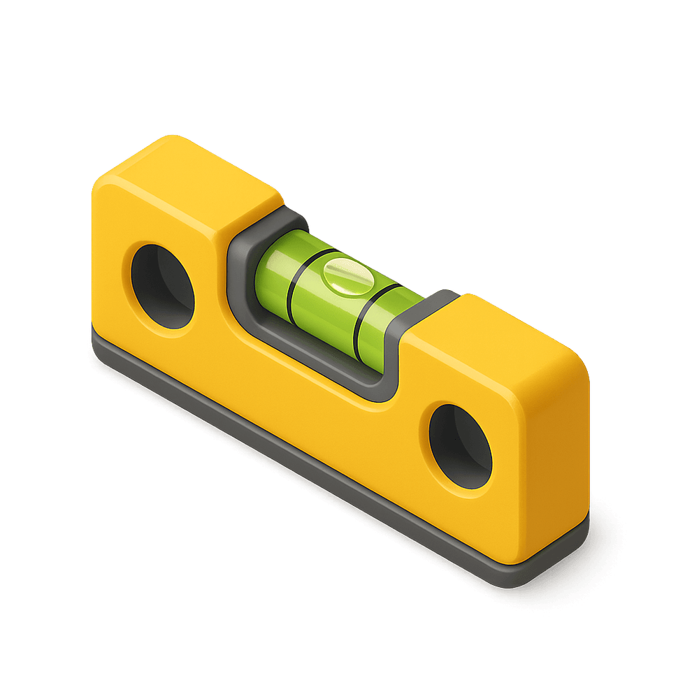 A bubble level is a tool used to determine whether a surface is horizontally or vertically aligned. It contains a liquid-filled vial with an air bubble that indicates levelness when centered between marked lines. Commonly used in construction, carpentry, and DIY projects.