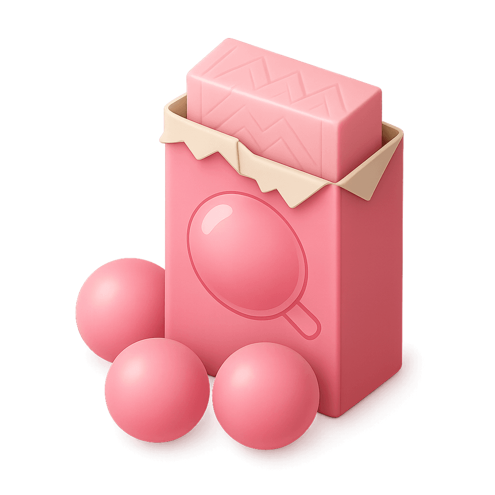 Bubblegum is a chewy, sweet confection known for its stretchy texture and ability to be blown into bubbles. Popular among children and adults alike, it comes in a variety of flavors and bright colors.