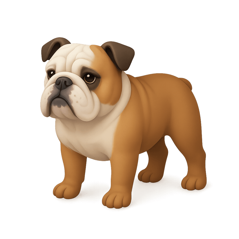 A Bulldog is a medium-sized, muscular dog breed known for its loose, wrinkled skin, distinctive pushed-in nose, and gentle, loyal temperament. Originally bred for bull-baiting, Bulldogs are now popular as affectionate family pets.