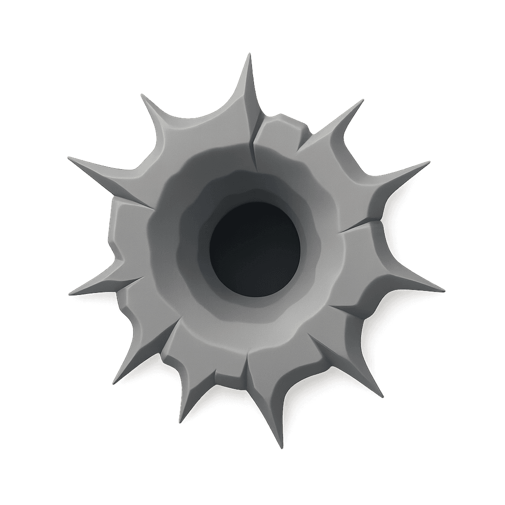 A bullet hole is a small, round or irregular opening created when a bullet penetrates a surface, such as a wall, door, or object. It is often associated with firearms, crime scenes, or accidents in everyday environments.