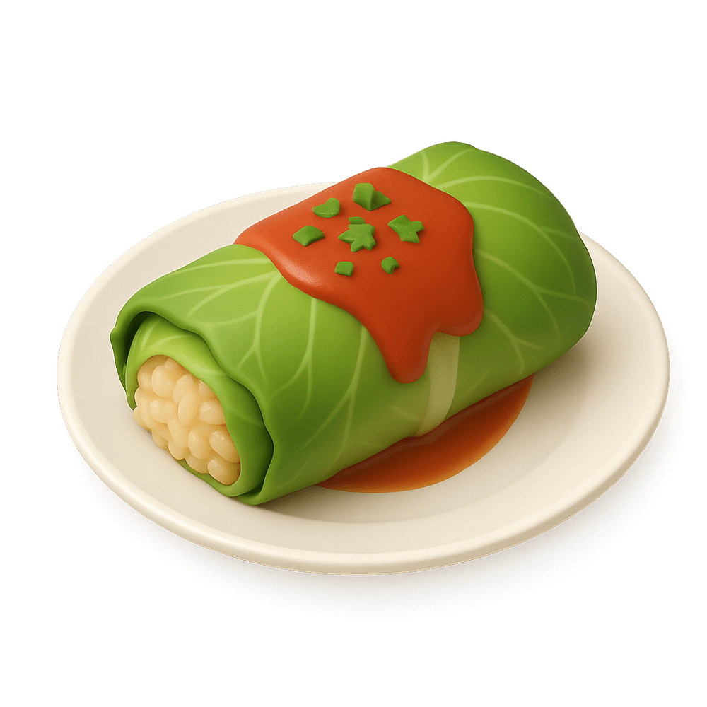 A cabbage roll is a traditional dish made by wrapping seasoned meat and rice in cabbage leaves, then baking or simmering in a savory sauce. Popular in many European and Middle Eastern cuisines.