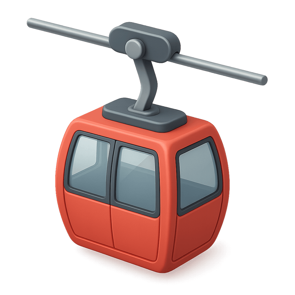 A cable car is a type of vehicle that travels on cables, typically suspended above the ground, used for transporting people or goods across difficult terrain such as mountains or urban areas. It is commonly found in tourist destinations and cities with steep landscapes.