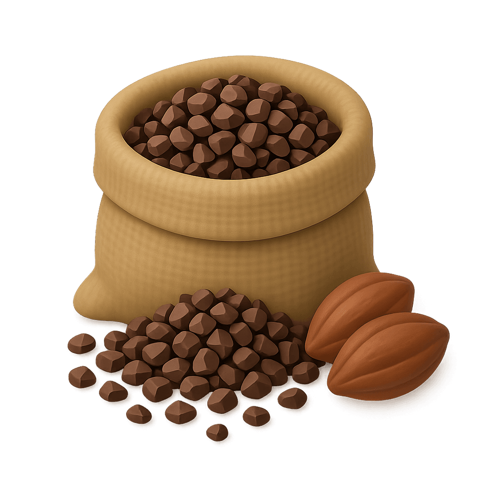 Cacao nibs are small pieces of crushed cacao beans that have a rich, chocolatey flavor and a crunchy texture. They are minimally processed, making them a natural source of antioxidants, fiber, and nutrients. Often used as a topping for desserts, in baking, or as a healthy snack, cacao nibs are popular among health-conscious consumers and chocolate lovers alike.