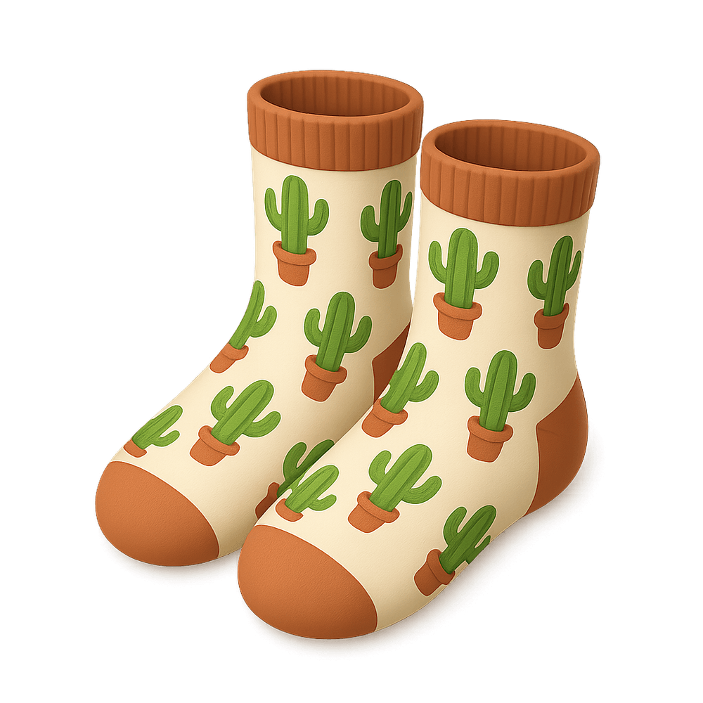 Fun and quirky socks featuring a playful cactus print, perfect for adding a touch of personality to any outfit. Comfortable and stylish, these socks are ideal for casual wear or as a unique gift.