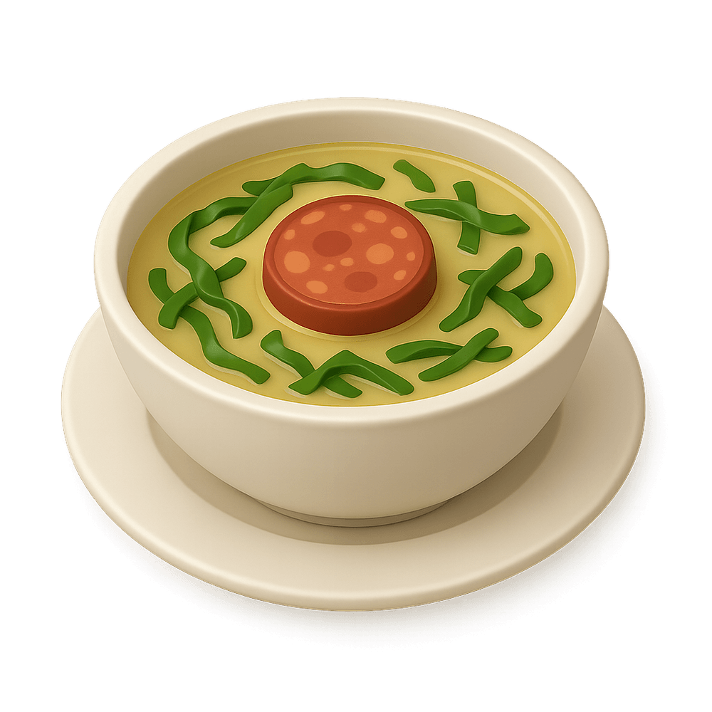 Caldo Verde Soup is a traditional Portuguese soup made with potatoes, kale, chorizo sausage, and olive oil. It is a comforting, savory dish often enjoyed as a staple in Portuguese cuisine.