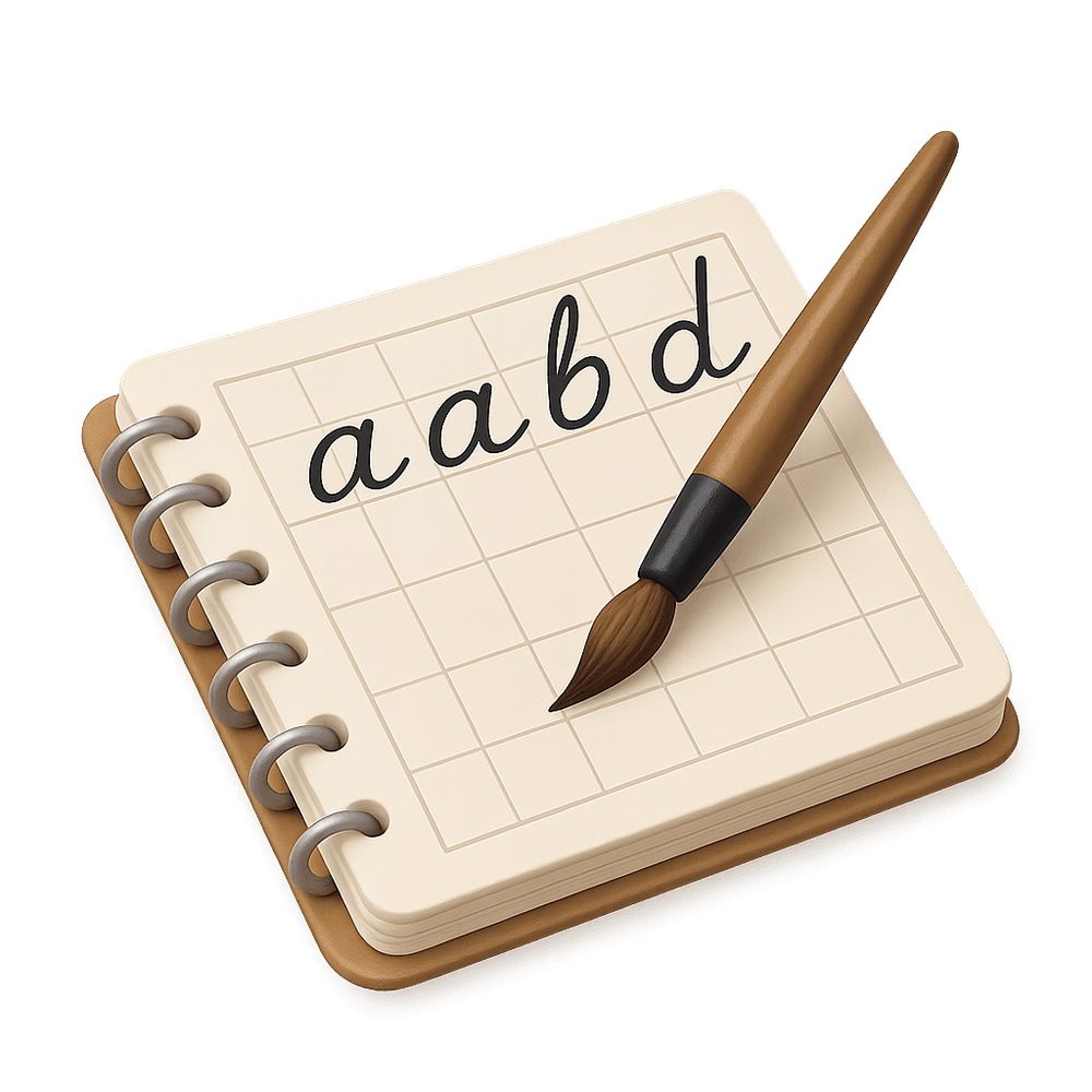 A book with pre-printed guidelines and sample alphabets for practicing calligraphy strokes and letterforms. Ideal for beginners and hobbyists interested in improving their handwriting or learning decorative writing styles.