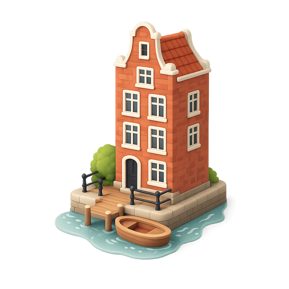 A Canal House is a narrow, multi-story building typically found along canals in cities like Amsterdam. These historic structures are known for their unique architecture, tall facades, and picturesque waterside locations.