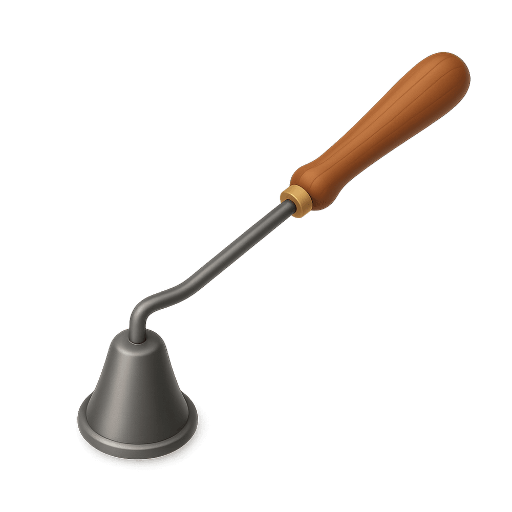 A candle snuffer is a small tool used to safely extinguish candles by smothering the flame, preventing wax splatter and smoke. It is often used in hobbies such as candle making or home decor.