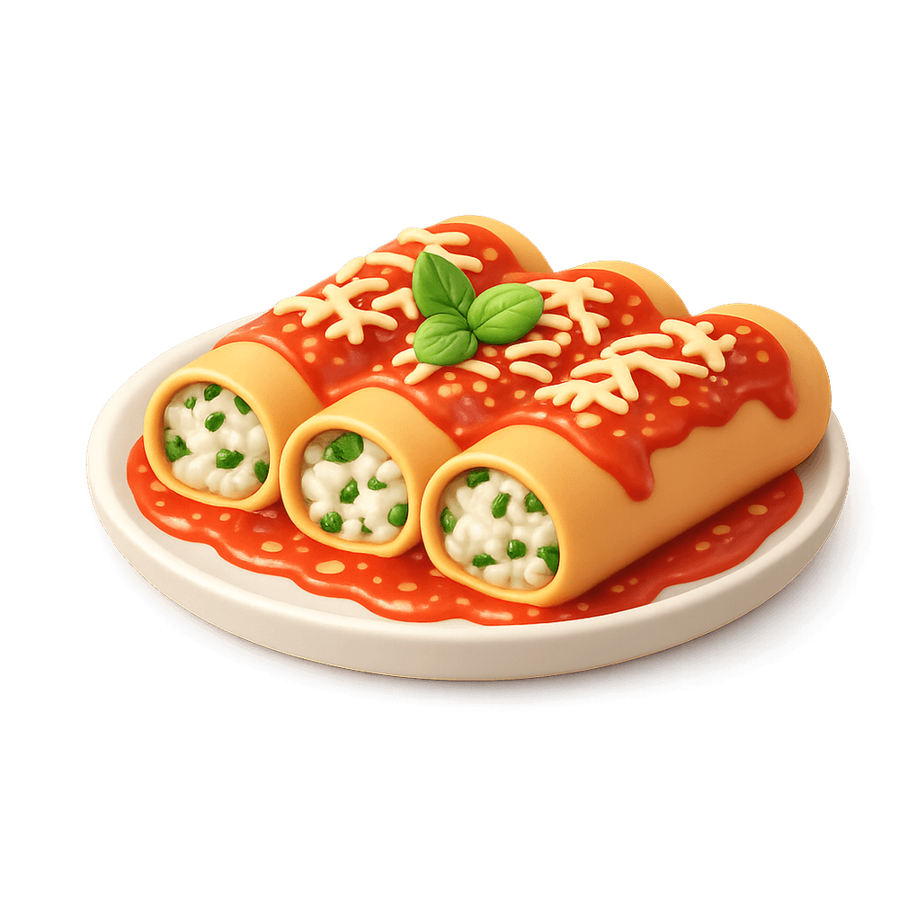Cannelloni is a traditional Italian pasta dish featuring large pasta tubes stuffed with a savory filling, typically ricotta cheese and spinach or meat, then baked with tomato sauce and cheese. It is a popular comfort food and a staple in Italian cuisine.