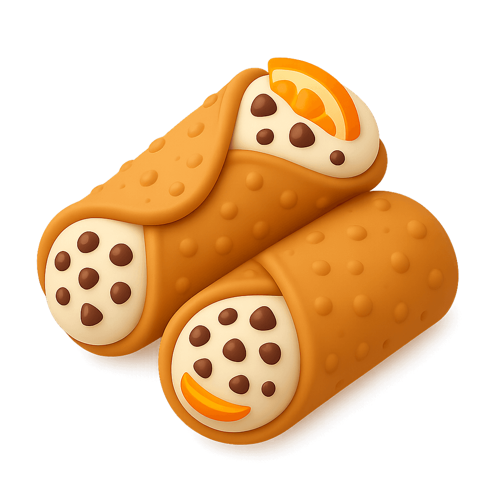 A cannoli is a traditional Italian pastry consisting of a crisp, fried tube-shaped shell filled with a sweet, creamy ricotta-based filling, often with chocolate chips or candied fruit. Popular as a dessert or sweet snack, cannoli are a staple of Sicilian cuisine and enjoyed worldwide.
