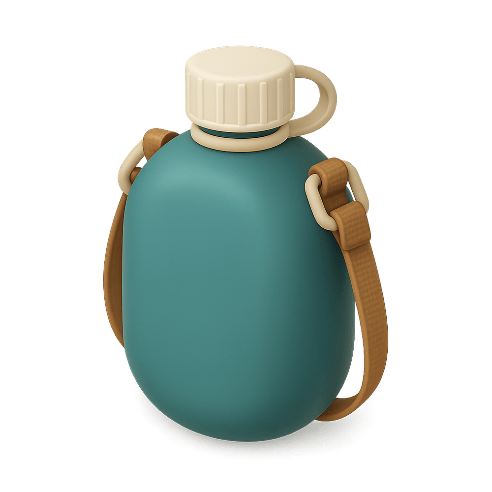 A canteen is a portable container used to carry water or other beverages, commonly used by hikers, campers, soldiers, and outdoor workers to stay hydrated while away from a water source.