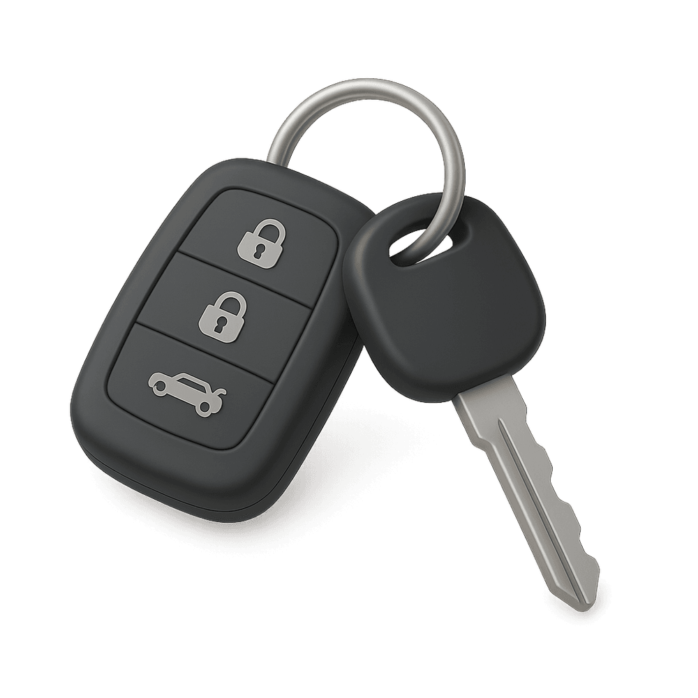 A small device used to start and unlock a car, often attached to a keychain and essential for daily transportation and vehicle security.
