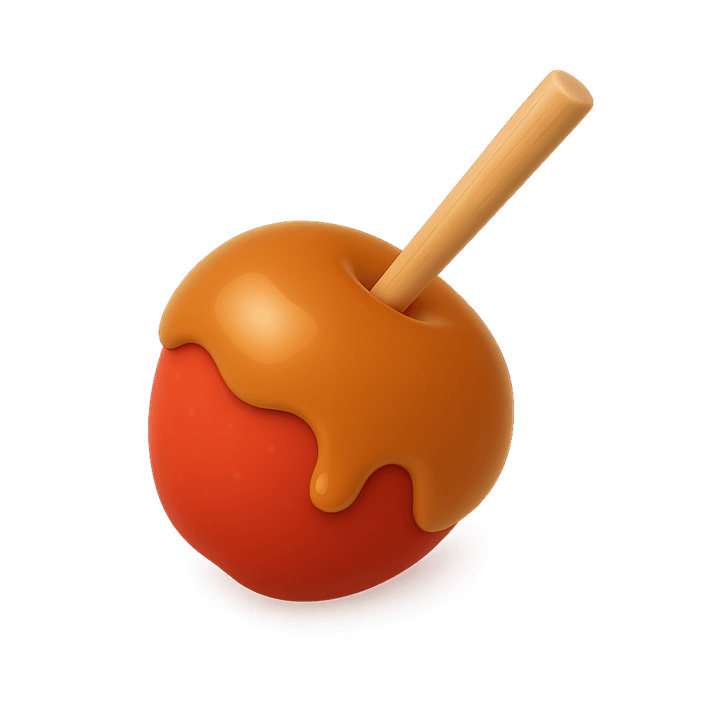 A caramel apple is a fresh apple coated in a layer of sweet, sticky caramel. Popular at fairs and during autumn, it's a classic treat that combines crisp fruit with a rich, sugary shell.