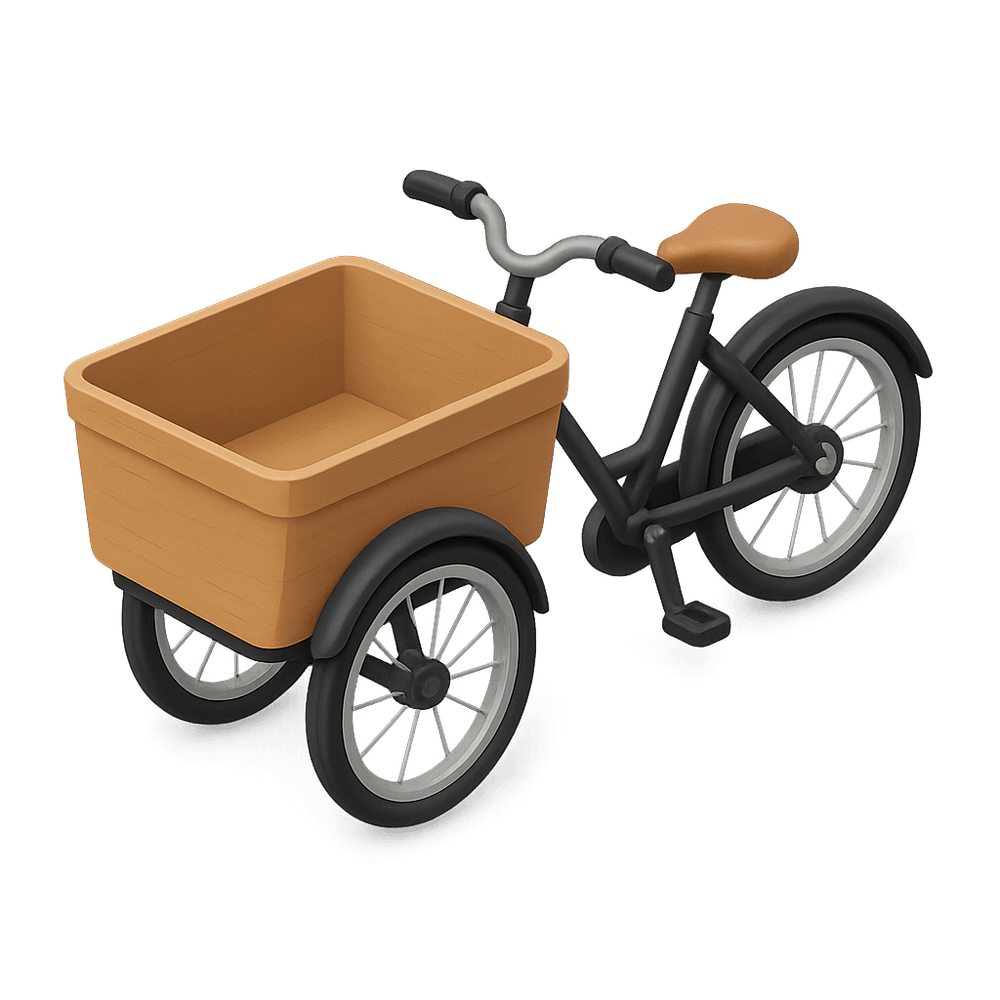 A cargo bicycle is a human-powered vehicle designed to carry heavy loads or multiple passengers. It features a sturdy frame and an extended platform or box, making it ideal for transporting goods, groceries, or even children in urban environments. Cargo bicycles are commonly used for eco-friendly deliveries and family transport.