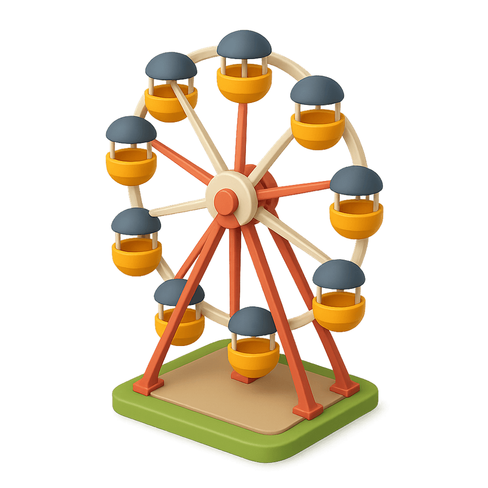 A large, rotating amusement ride featuring passenger cabins attached to a circular frame, offering riders elevated views and a gentle, scenic experience at carnivals and fairs.