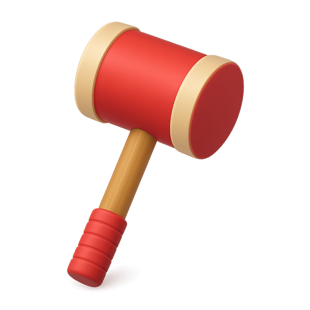 A Carnival Hammer is a large, heavy mallet used in strength-testing games at fairs and amusement parks. Participants swing the hammer to hit a lever, aiming to ring a bell and win a prize.