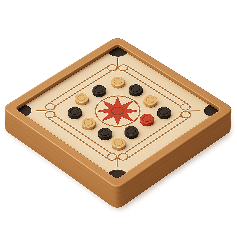 A Carrom Board is a square, wooden tabletop game used for playing carrom, a popular indoor game in South Asia. Players use a striker to flick wooden discs into corner pockets, combining skill and strategy for entertainment and leisure.