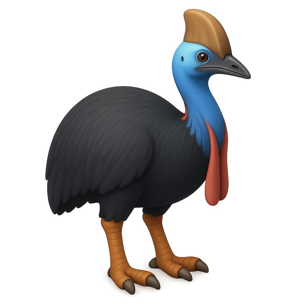 The cassowary is a large, flightless bird native to the tropical forests of New Guinea, nearby islands, and northern Australia. Known for its striking blue and black plumage, helmet-like casque, and powerful legs, the cassowary is considered one of the most dangerous birds due to its strong kick.