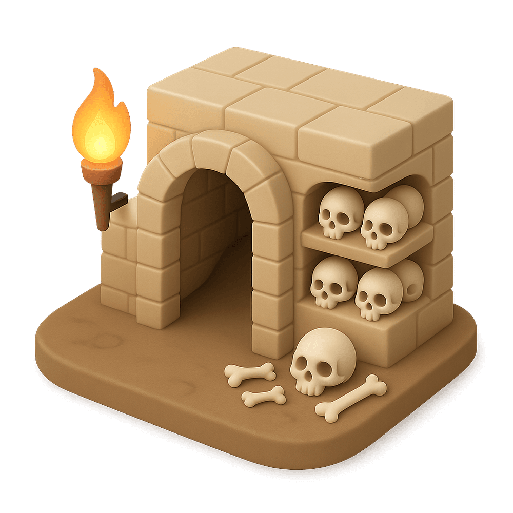 Catacombs are underground burial sites, often consisting of tunnels and chambers, historically used for interring the dead. They are notable for their architectural and historical significance, and are often associated with ancient or medieval cities.