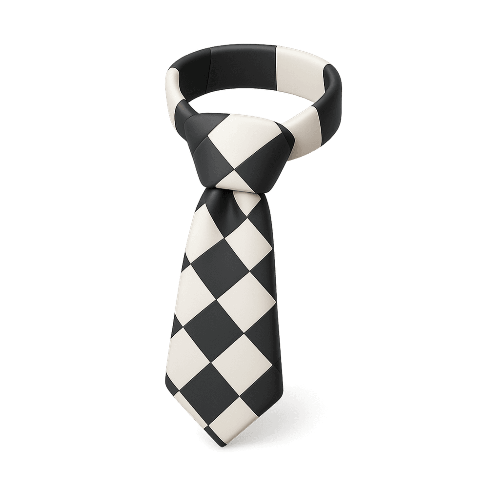 A stylish necktie featuring a bold checkerboard pattern, perfect for adding a playful yet sophisticated touch to formal or casual outfits.