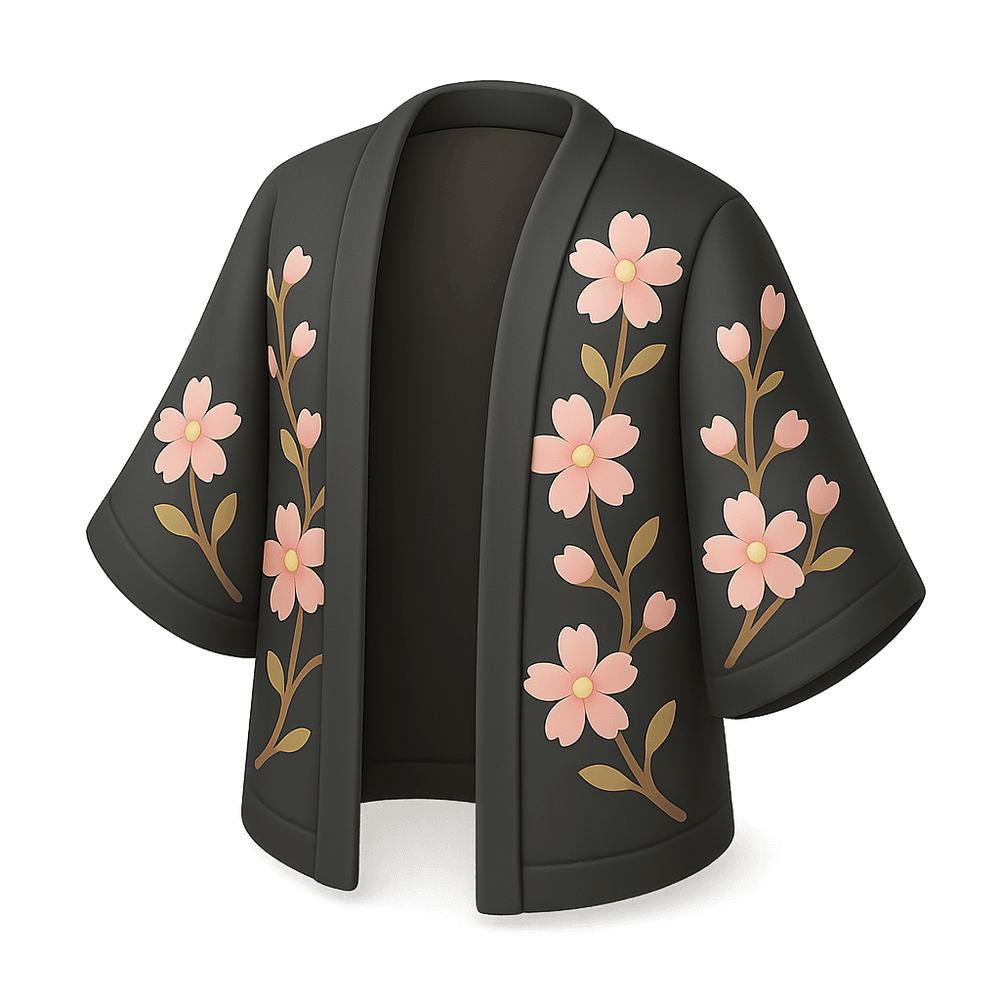 A lightweight, open-front jacket inspired by traditional Japanese kimono design, featuring elegant cherry blossom patterns. Perfect for layering and adding a touch of cultural flair to any outfit.