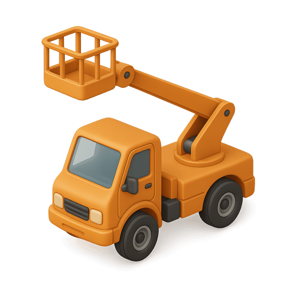 A cherry picker is a type of aerial work platform that consists of a hydraulic crane with a railed platform at the end, used to lift workers to high, hard-to-reach places for maintenance, construction, or repairs.