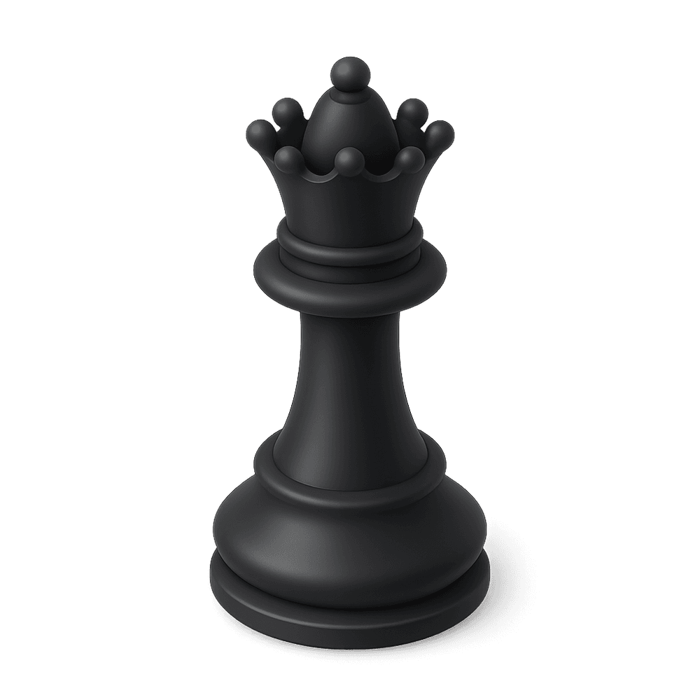 A black queen chess piece, the most powerful piece in the game of chess, used for strategic moves and gameplay. Essential for both casual and competitive play.