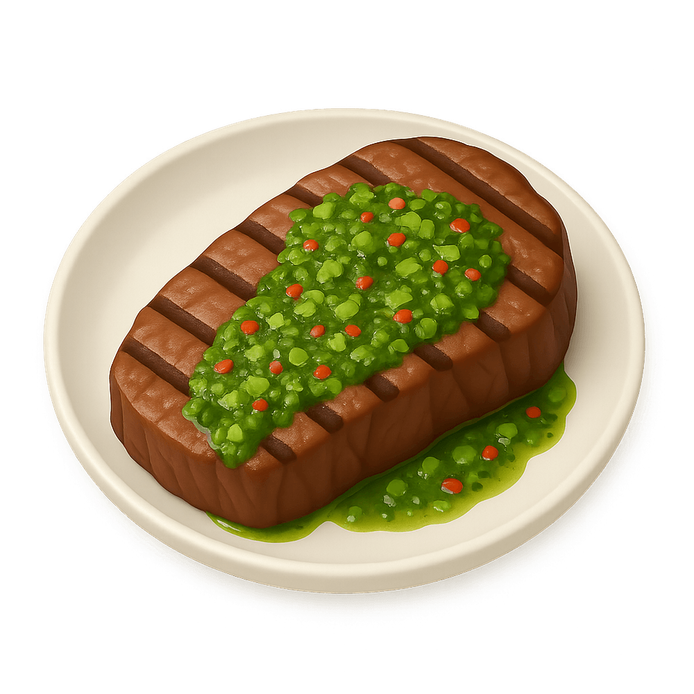 Chimichurri Steak is a grilled beef steak topped with a vibrant, herbaceous chimichurri sauce, popular in South American cuisine. The dish is known for its savory, tangy flavors and is often served as a main course.
