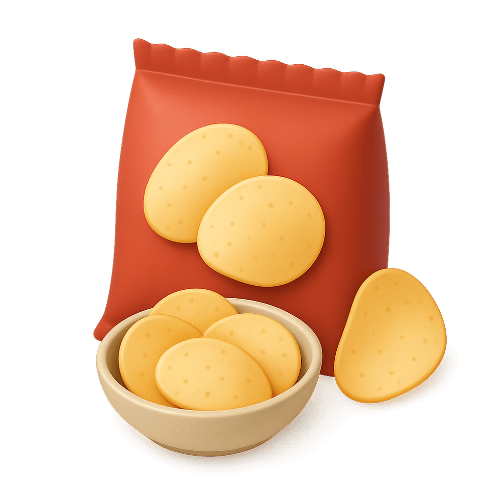 Thin, crispy slices of potato or other vegetables, usually deep-fried or baked and seasoned, commonly enjoyed as a salty snack.