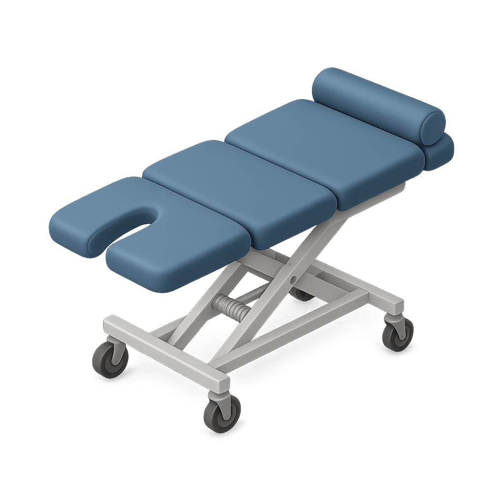 A specialized table designed for chiropractic treatments, providing adjustable support for patients during spinal adjustments and other therapeutic procedures.