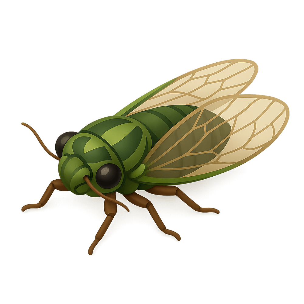 A cicada is a large, loud insect known for its distinctive buzzing sound, produced by males to attract mates. Cicadas spend most of their lives underground as nymphs before emerging in large numbers to molt and reproduce. They are found in many parts of the world and are notable for their unique life cycles, which can last several years.