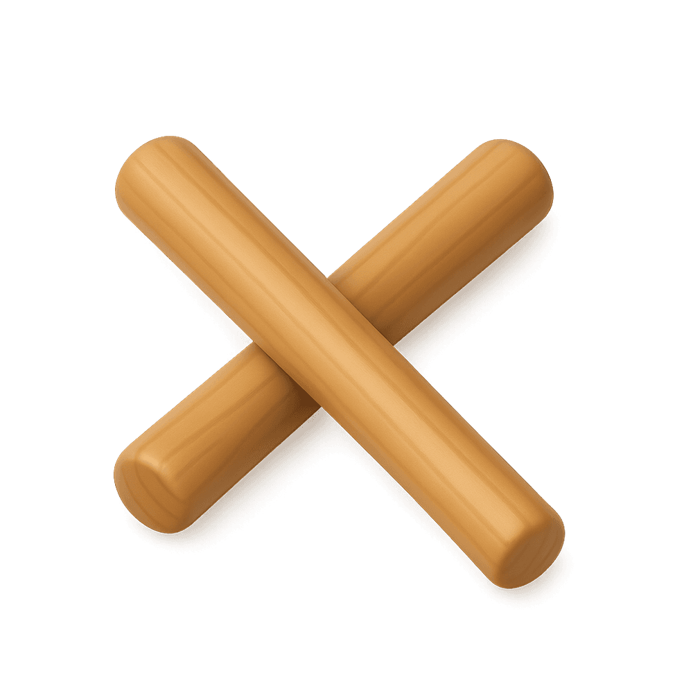 Claves are a pair of cylindrical wooden sticks used as a percussion instrument, producing a sharp, resonant sound when struck together. Commonly used in Latin American music, they provide rhythm and are essential in genres like salsa and son.