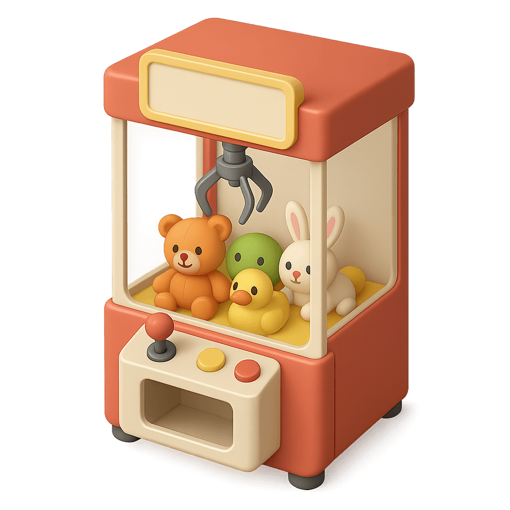 A claw machine is an arcade game where players control a mechanical claw to try and grab prizes, typically plush toys or small gadgets, inside a glass cabinet. It is commonly found in entertainment venues and amusement arcades.