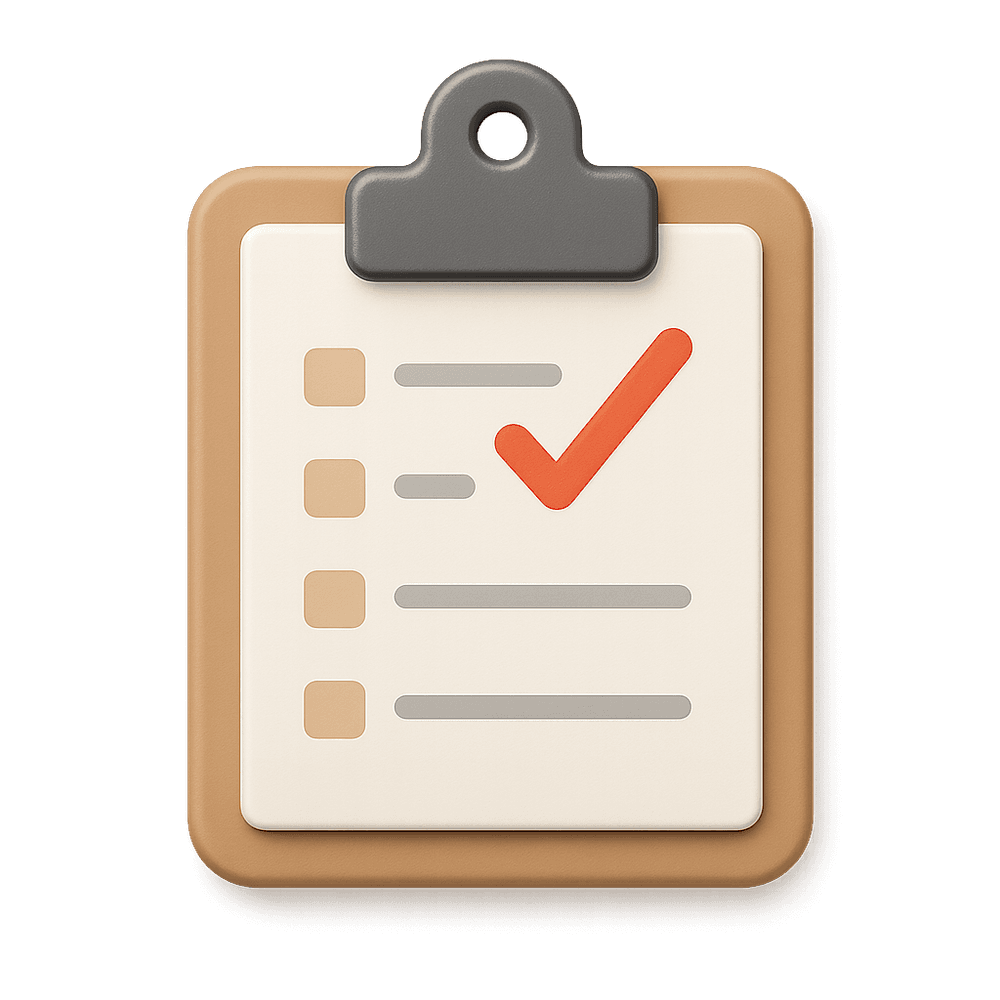 A flat board with a spring-loaded clip at the top, used for holding papers steady while writing or filling out forms, commonly used in offices, warehouses, and industrial settings.