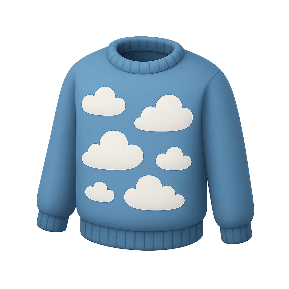 A cozy sweater featuring a unique cloud print design, perfect for adding a whimsical touch to your everyday style. Ideal for casual wear and expressing creativity through fashion.