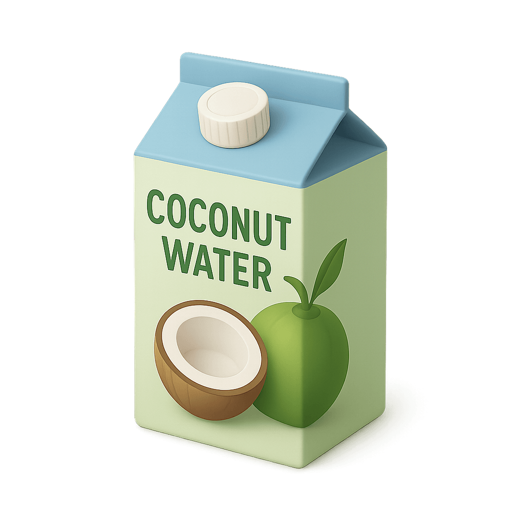 A Coconut Water Carton is a convenient, ready-to-drink beverage package containing natural coconut water. It is often enjoyed as a hydrating and refreshing drink, popular for its natural electrolytes and subtle sweetness.