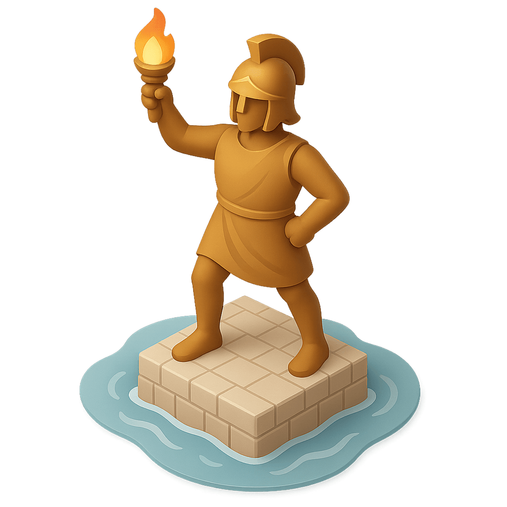 The Colossus of Rhodes was a giant statue of the sun god Helios, built in the ancient Greek city of Rhodes. Considered one of the Seven Wonders of the Ancient World, it stood over 30 meters tall and symbolized the city's strength and resilience.
