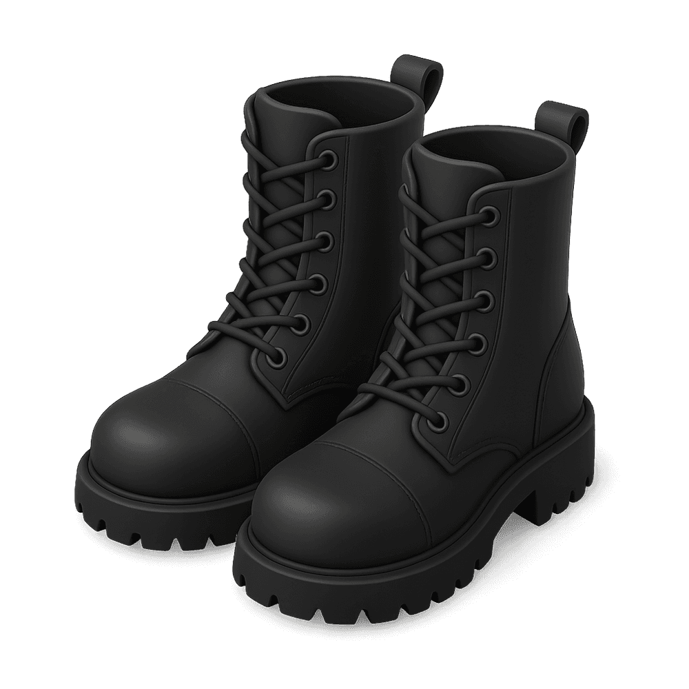 Sturdy black combat boots designed for both fashion and function. These boots feature a rugged sole and durable construction, making them suitable for urban style or practical wear.