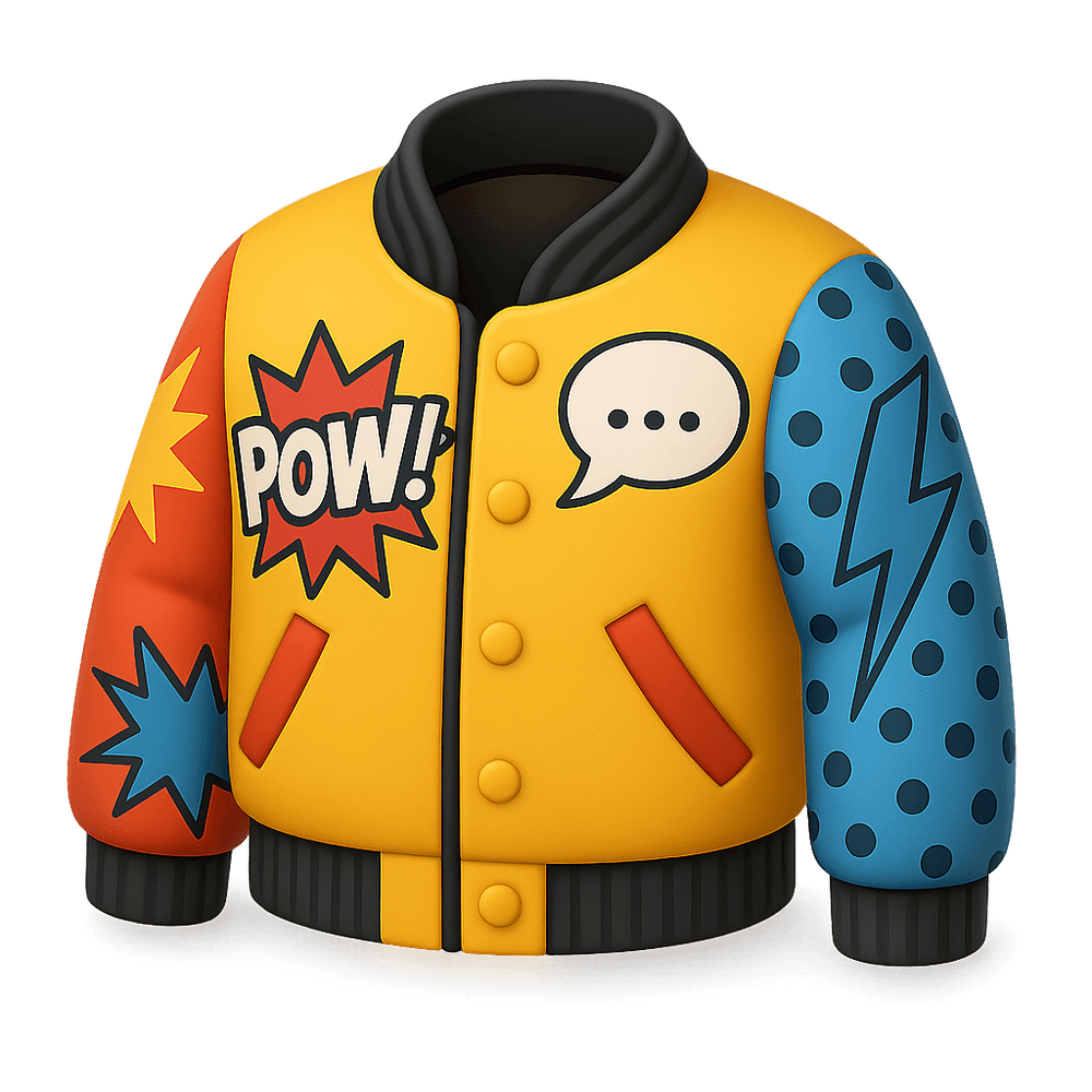 A stylish outerwear piece featuring vibrant comic book-inspired prints, blending pop culture with fashion. Perfect for making a bold statement or adding a playful touch to any outfit.