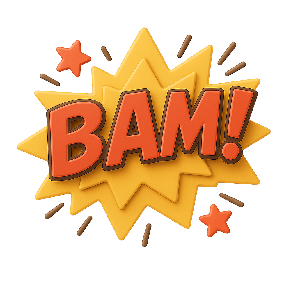 A Comic Sound Effect Sign is a decorative sign or prop featuring stylized text that mimics the dramatic sound effects found in comic books, such as 'BAM!', 'POW!', or 'ZAP!'. Often used for parties, photo booths, or themed events, these signs add a playful and nostalgic touch to entertainment settings.