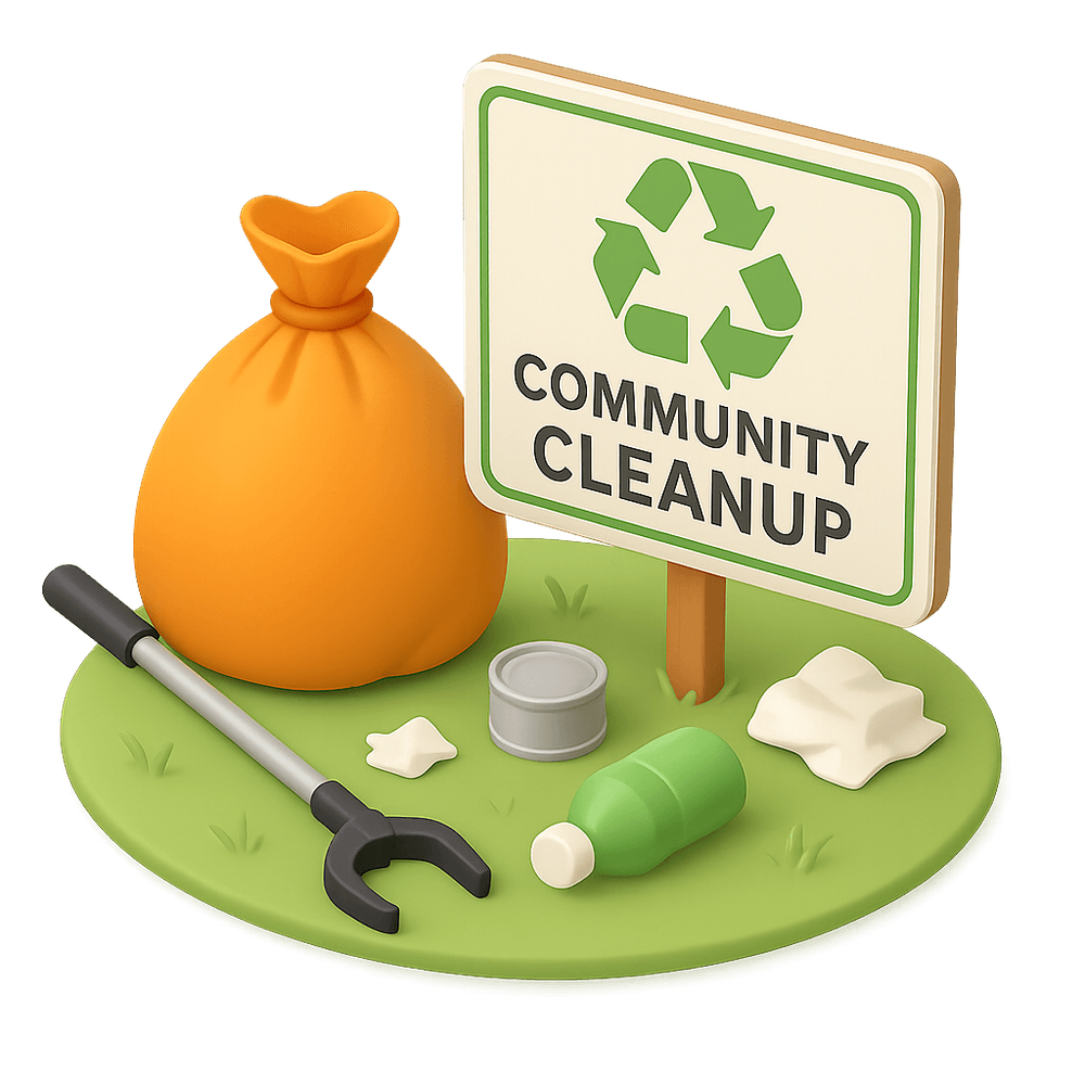 A Community Cleanup is a local event where volunteers gather to clean public spaces, such as parks, streets, or beaches, to improve the environment and foster community spirit.