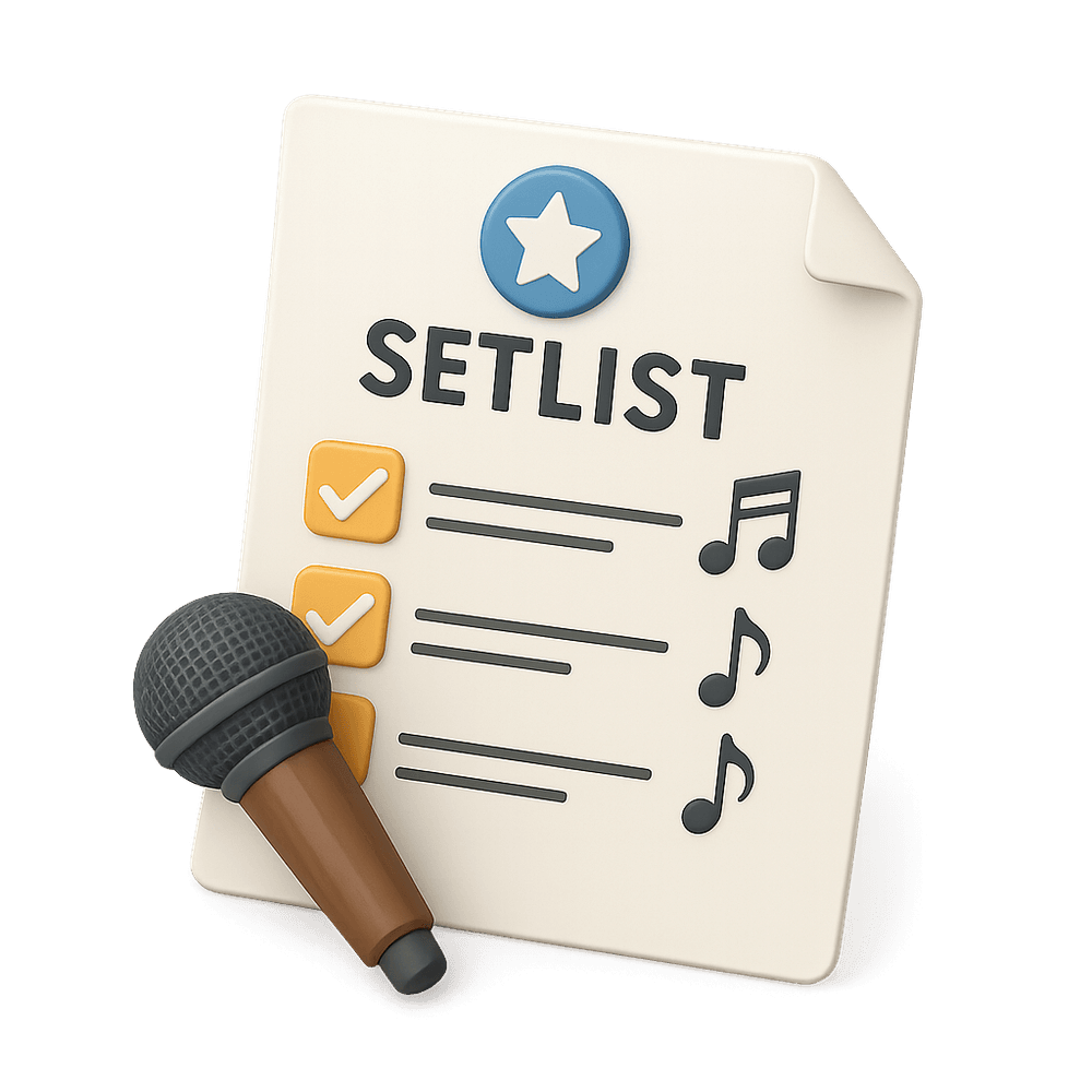 A concert setlist is a curated list of songs or musical pieces that an artist or band plans to perform during a concert or live show. It serves as a guide for both performers and crew, outlining the order and selection of music for the event.