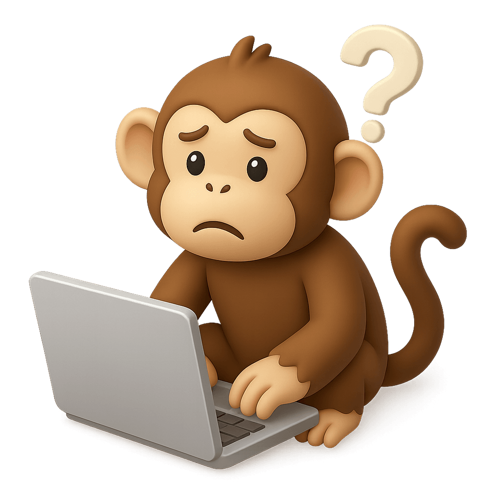 A whimsical depiction of a monkey sitting at a computer, looking perplexed as it tries to make sense of the digital world. Perfect for sparking imagination and humor in any fantasy-themed setting.