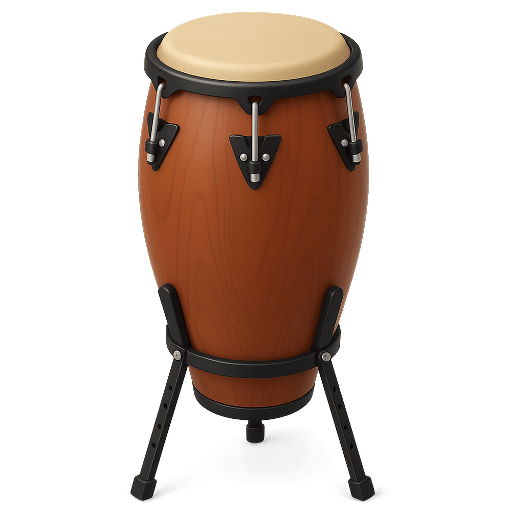 A tall, narrow, single-headed drum of Afro-Cuban origin, played with the hands and commonly used in Latin music and various world music genres.