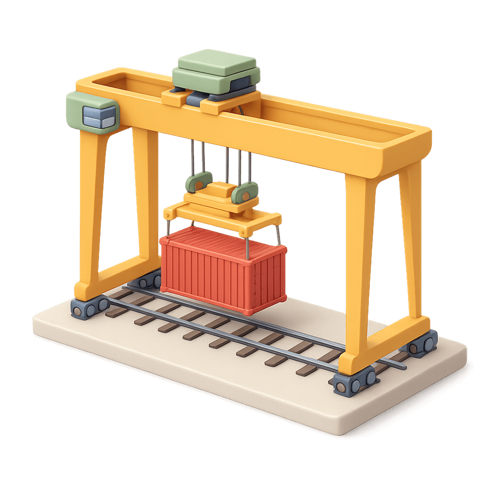 A large, rail-mounted crane designed for loading and unloading shipping containers at ports and freight terminals. It moves along tracks to efficiently transfer containers between ships, trucks, and trains.