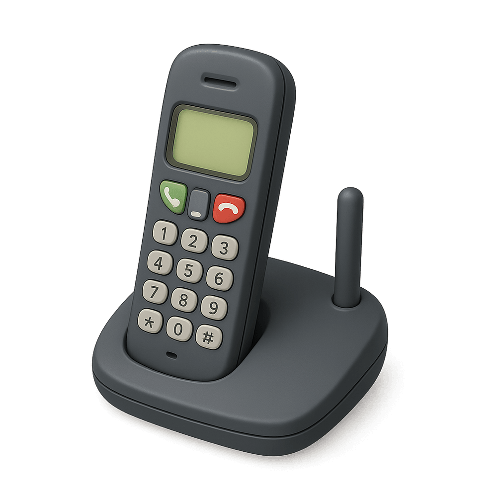 A cordless phone is a wireless telephone device that allows users to make and receive calls without being physically connected to a phone line. It consists of a handset and a base station, providing mobility and convenience for everyday communication at home or in the office.
