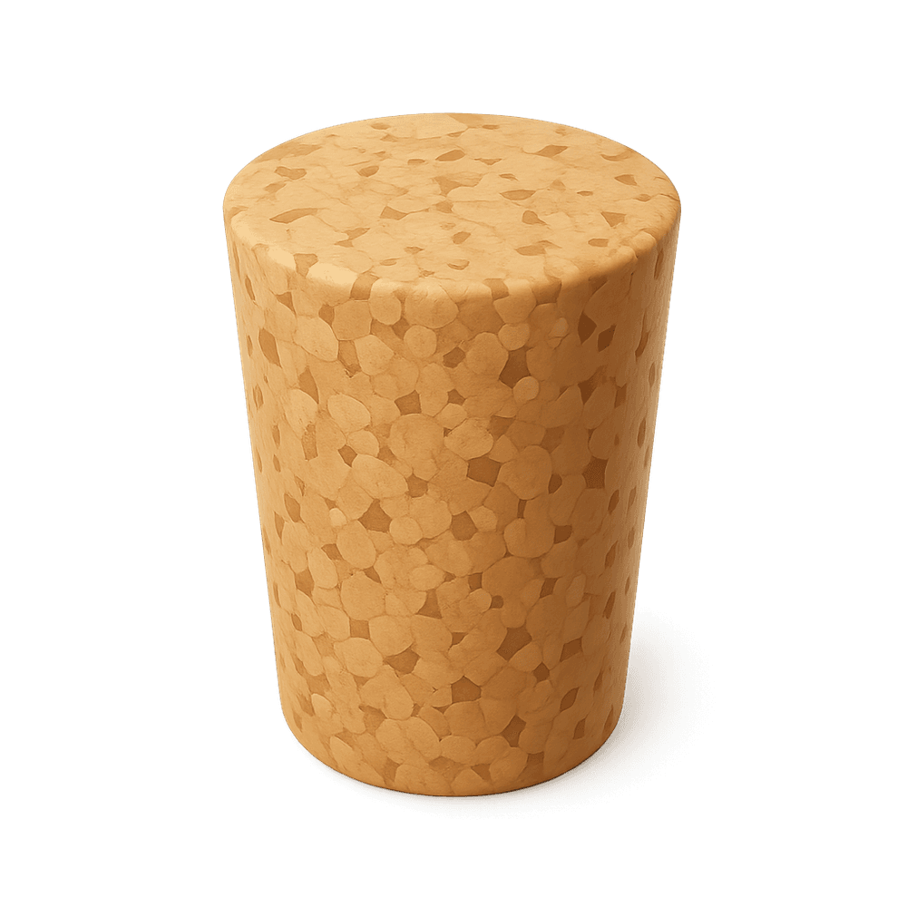 A cork stopper is a small, cylindrical plug made from natural cork, used to seal bottles and preserve the freshness of beverages such as wine. It prevents spillage and protects contents from air exposure.