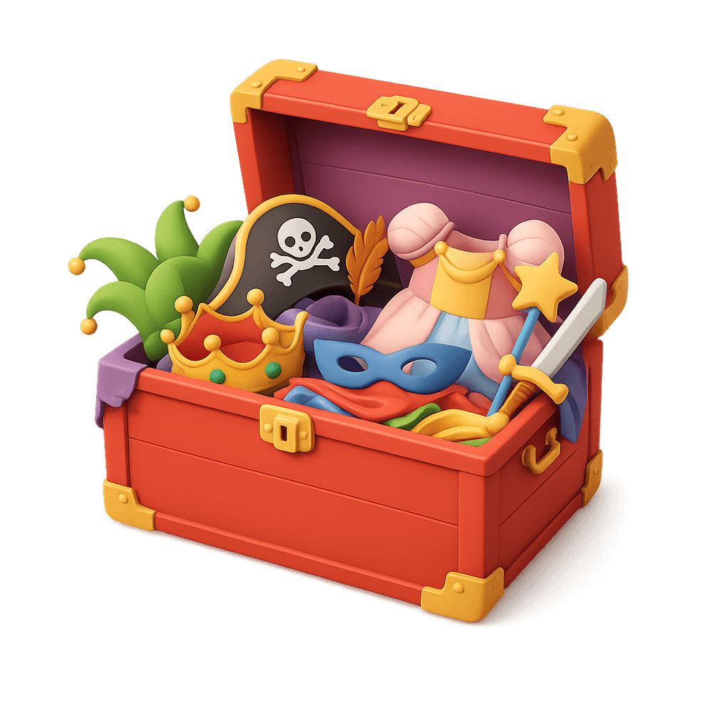 A costume trunk is a large storage container filled with a variety of costumes and accessories, often used for dress-up, imaginative play, or theatrical performances. It encourages creativity and entertainment for children and adults alike.