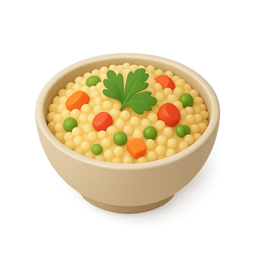 Couscous is a traditional North African dish made from steamed semolina wheat granules, often served with vegetables, meat, or stew. It is a staple food in many cultures and is known for its light, fluffy texture and versatility in savory dishes.